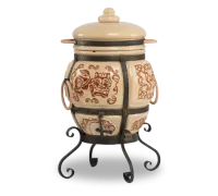 Тандыр покрыт глянцевой глазурью с орнаментом.